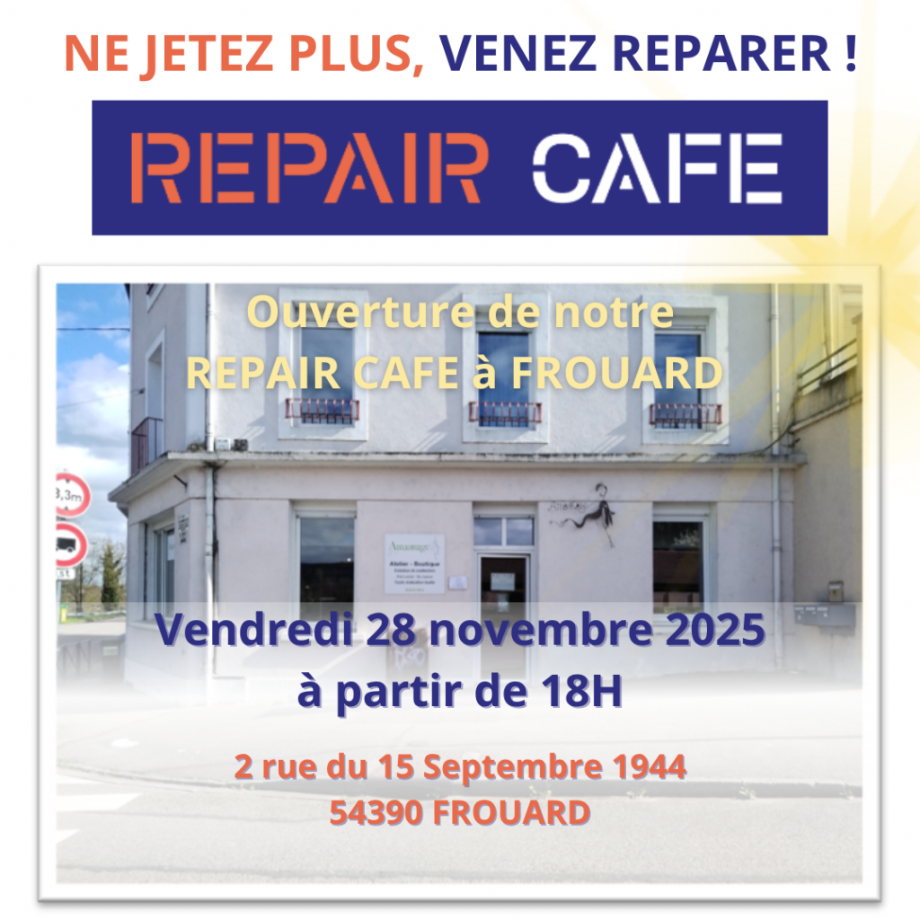 Nous ouvrons le premier Repair Café du Bassin de Pompey dans notre local 2 rue du 15 Septembre 1944 à Frouard.